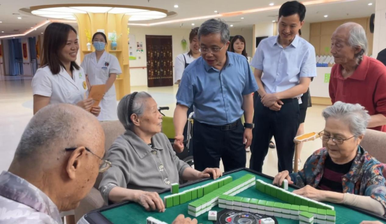 在徽州路宜鄰中心項(xiàng)目現(xiàn)場(chǎng),公司黨委書記、董事長(zhǎng)沈世躍同志向吳書記一行匯報(bào)了項(xiàng)目施工進(jìn)展、業(yè)態(tài)規(guī)劃、招商運(yùn)營(yíng)、廉潔工地創(chuàng)建等工作,實(shí)地考察了項(xiàng)目思廉亭、廉潔文化墻。吳書記對(duì)將廉潔元素融入項(xiàng)目建設(shè)的做法給予充分肯定。隨后來到羅蘭小鎮(zhèn)養(yǎng)老公寓,詳細(xì)了解了養(yǎng)老公寓的入住流程、戶型類型、配套服務(wù)、老人健康管理等。在走訪中,偶遇正在休閑活動(dòng)的長(zhǎng)者,并與他們親切交談、詢問入住體驗(yàn),盈盈笑語充溢于室。